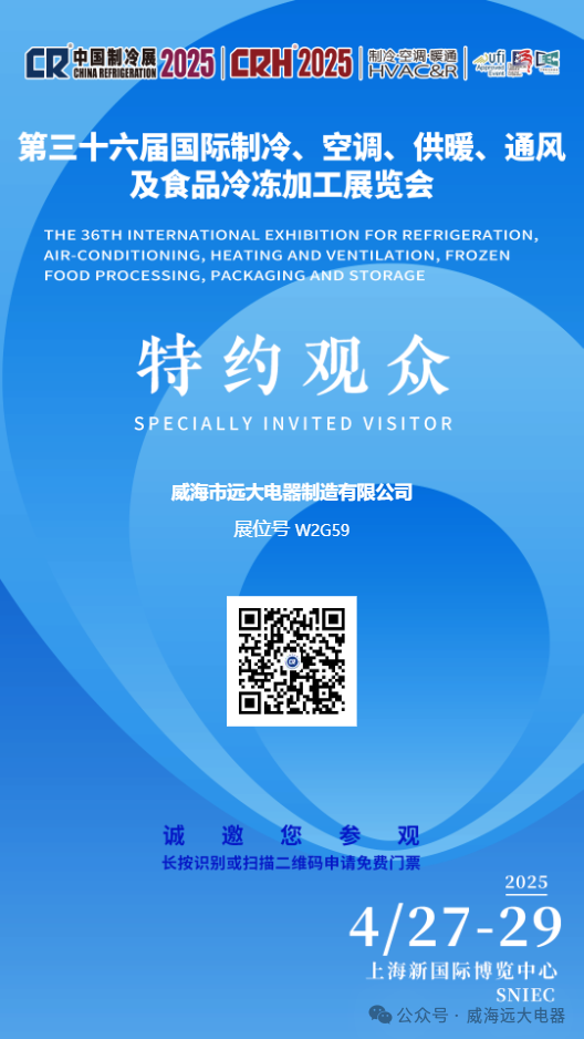 您好!非常感謝您長期以來對威海遠(yuǎn)大電器的大力支持,第三十六屆中國制冷展即將亮相上海,屆時我們展會現(xiàn)場將會進行我司產(chǎn)品陳列展示,在此,我們誠摯的邀請您蒞臨我司展位參觀指導(dǎo),我們將會為您提供貼心、專業(yè)的產(chǎn)品與技術(shù)服務(wù)。